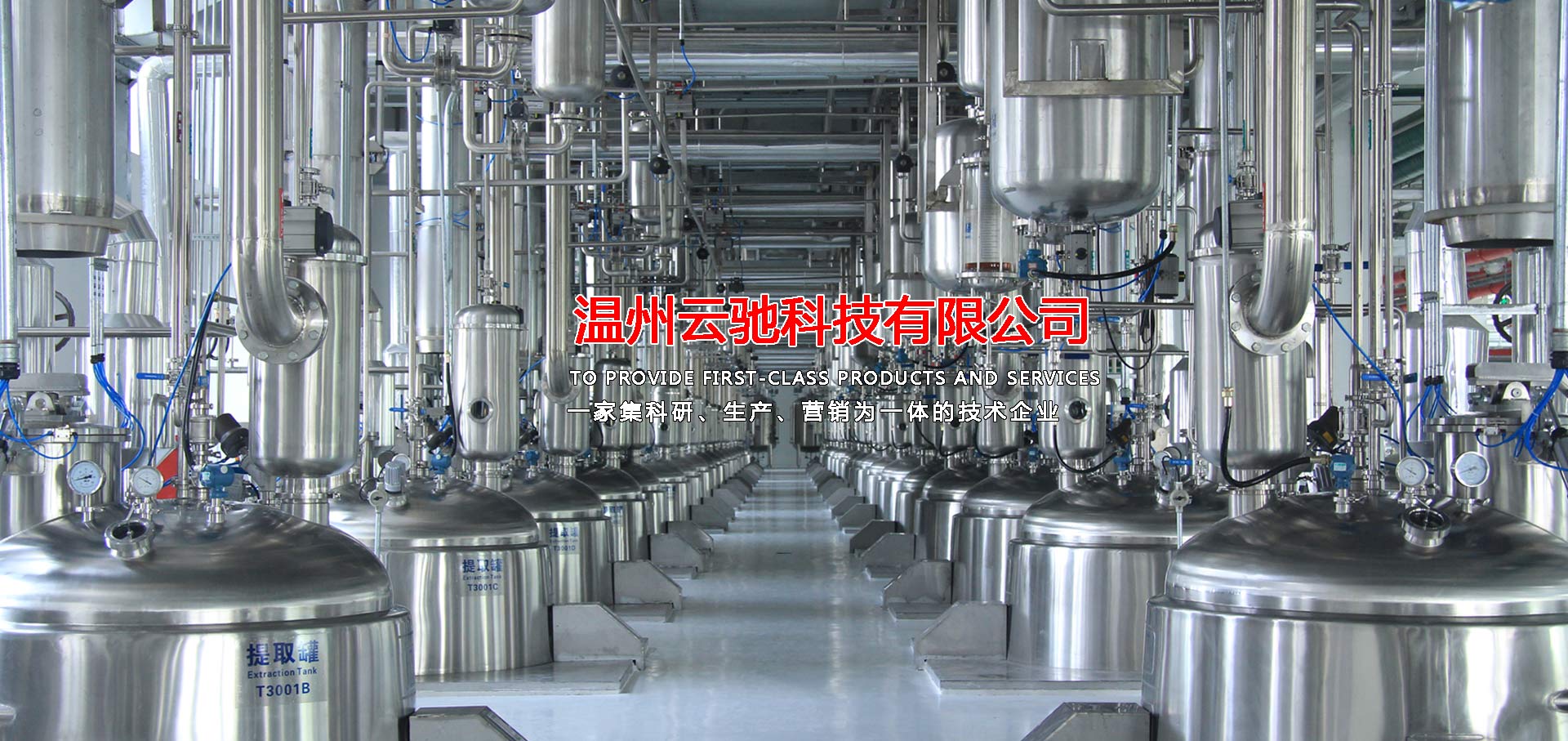 溫州云馳科技有限公司是一家集科研、生產(chǎn)、營銷為一體的技術(shù)企業(yè),本公司生產(chǎn)的中藥提取、濃縮、蒸發(fā)及有機(jī)溶媒回收設(shè)備,衛(wèi)生級不銹鋼容器設(shè)備,衛(wèi)生級管道配件等系列產(chǎn)品,范圍涵蓋制藥工程、乳品工程、生物工程、化工工程等領(lǐng)域,目前,本公司產(chǎn)品包含八大系列和28類品種,分別為中藥提取設(shè)備、濃縮設(shè)備、純化分離設(shè)備,酒精回收設(shè)備,配液系統(tǒng)設(shè)備,食品乳品機(jī)械設(shè)備,不銹鋼容器設(shè)備以及輔助配套設(shè)備等,力爭為廣大客戶提供滿意的交鑰匙工程服務(wù),目前,本公司已與多家科研院所及相關(guān)設(shè)計單位、行業(yè)協(xié)會、技術(shù)專員合作,建立了完善的科研開發(fā)體系,技術(shù)力量雄厚,擁有先進(jìn)的質(zhì)量保證體系,我們將打造一支素質(zhì)高,技術(shù)精,服務(wù)熱情的職業(yè)化隊伍,為廣大客戶解決設(shè)備工藝上的需求和難題并為廣大客戶提供優(yōu)質(zhì)的服務(wù)。